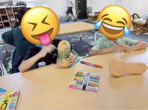 かぼちゃに絵を描いたり、紙に絵を描いて色塗りしたりしています!