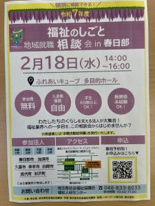 春日部市で開催される、福祉のしごと地域就職相談会に参加することが決まりました。
