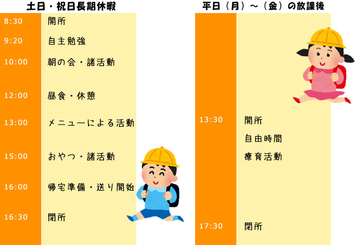 | 平日 (月)~(金) | 学校⇒ げんき広場⇒ ご自宅 |